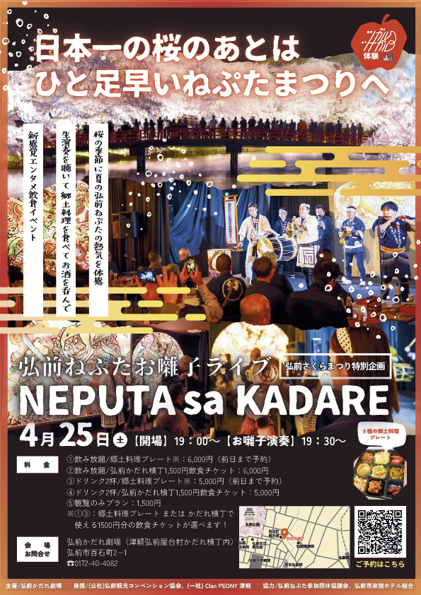 弘前ねぷたお囃子ライブ「NEPUTA sa KADARE」4月25日開催!