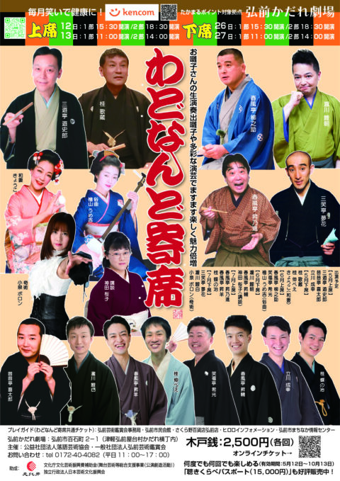 弘前かだれ劇場では、わどなんど寄席を毎月(日時のみ固定、曜日は変更)/上席(12日、13日)下席(26日、27日)開催しています。